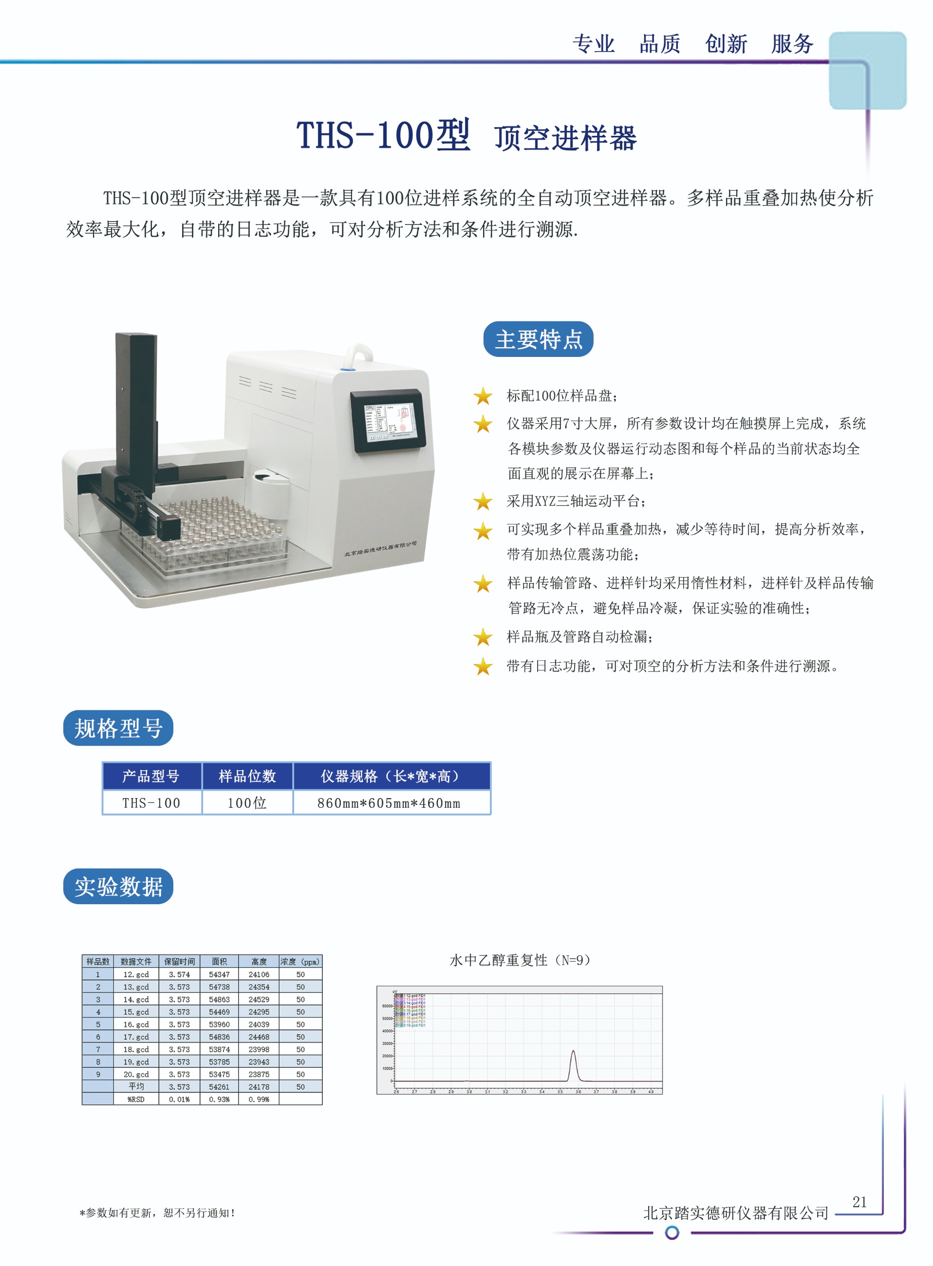 THS-100型頂空進(jìn)樣器是一款具有100位進(jìn)樣系統(tǒng)的全自動(dòng)頂空進(jìn)樣器。廣泛應(yīng)用于醫(yī)療衛(wèi)生,環(huán)保,石油化工,食品行業(yè),制藥等領(lǐng)域。該儀器符合